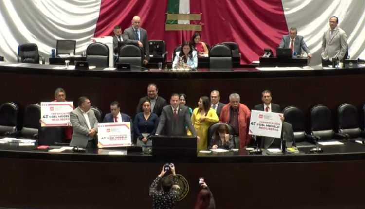 Diputados de oposición manifestaron su postura en contra de la reforma con pancartas,sin embargo,en la votación ganó el oficialismo.
