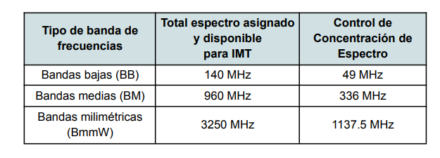 La principal objeción del interés de ICE era la condición de los topes de tenencia espectral,ya que el órgano regulador determinó límites para cada rango de frecuencias (bandas bajas,medias y altas).