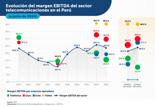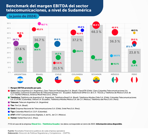 El análisis también documenta que la rentabilidad operativa de operadores peruanos (como Claro,Entel y Bitel) se encuentra en niveles cercanos y,en algunos casos superiores,a los niveles observados en empresas que operan en países como Brasil,Ecuador,Colombia y México,mercados en los que la rentabilidad promedio es superior al 30 por ciento.
